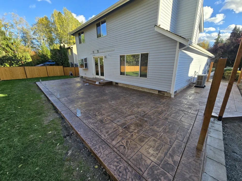 Stamped and decorative concrete replicates natural stone, tile, brick and even wood.